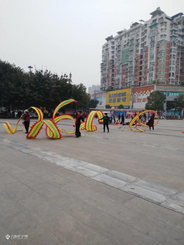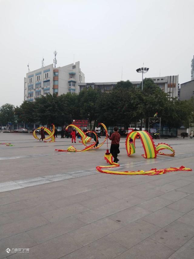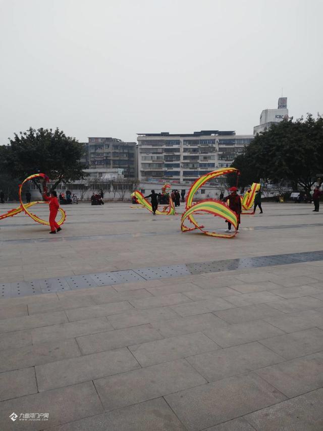 路过资阳西门桥头小广场,雁城市民挥舞着亮眼的彩龙,非常好看!