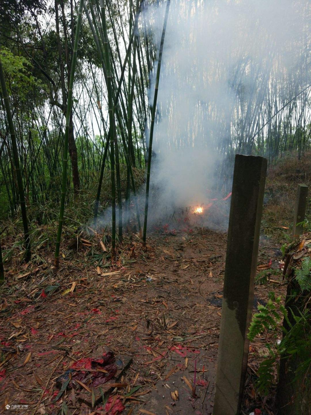 清明祭祖雨绵绵,爆竹声声唤故先。