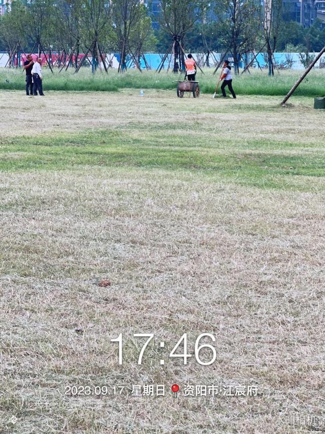 资阳建工集团的工人为迎接中秋国庆佳节,加班加点修剪滨河路西一段市政绿化草坪,完工后将为市民献上整齐划一绿草茵茵的大草坪
