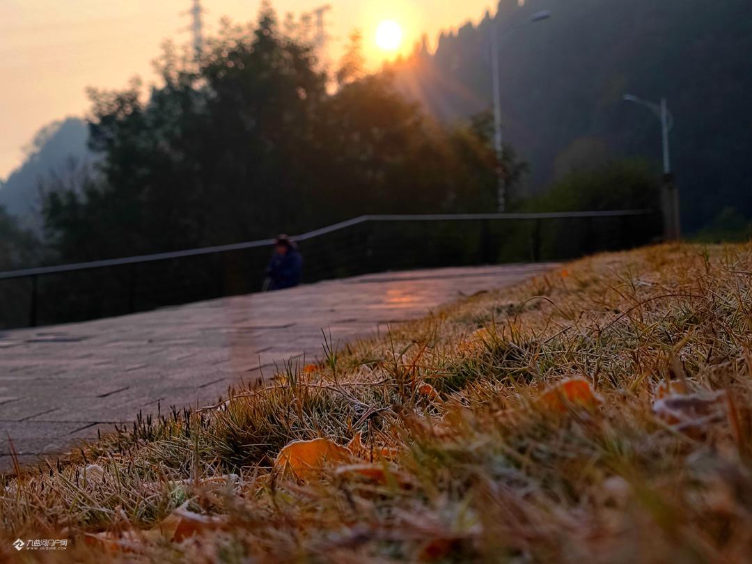 冬至里的湿地公园降霜了!