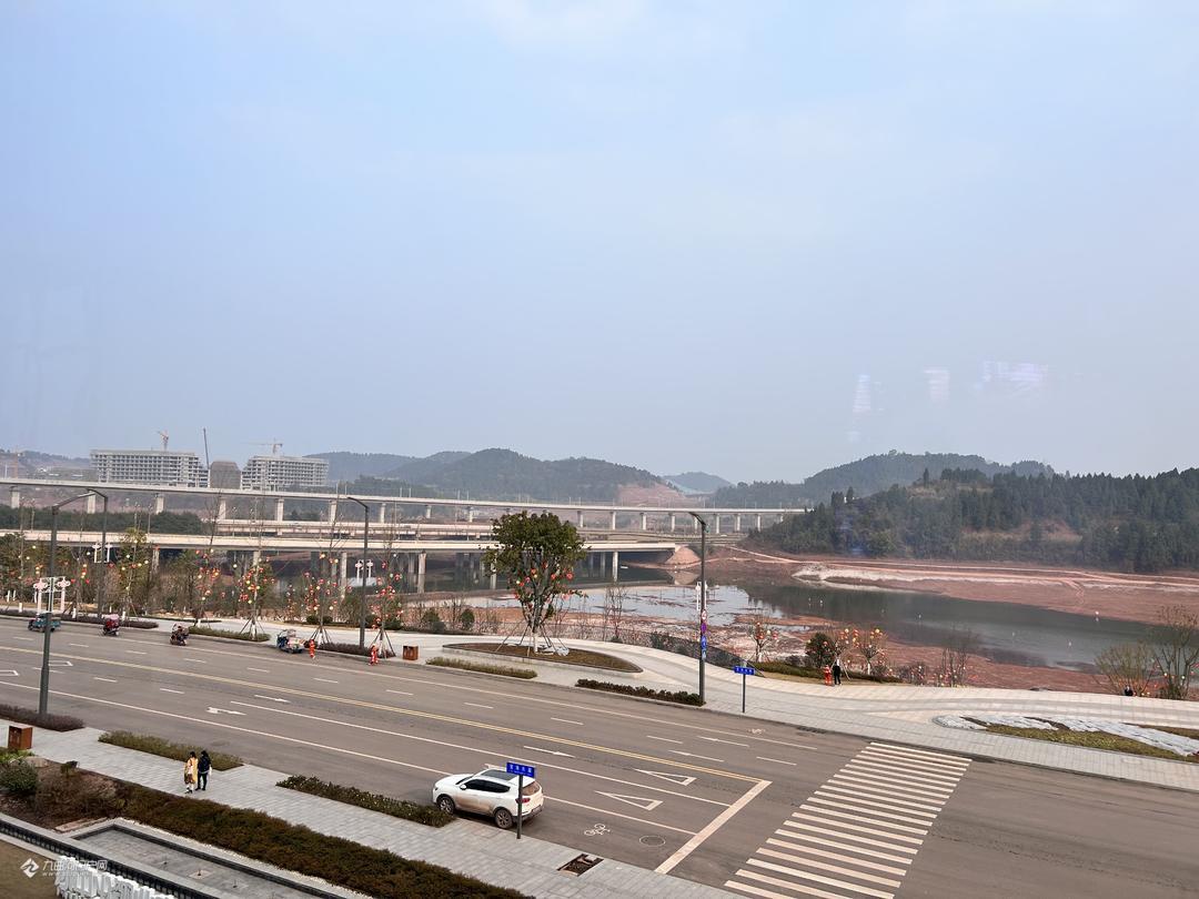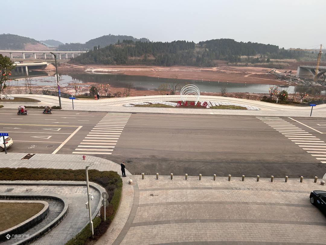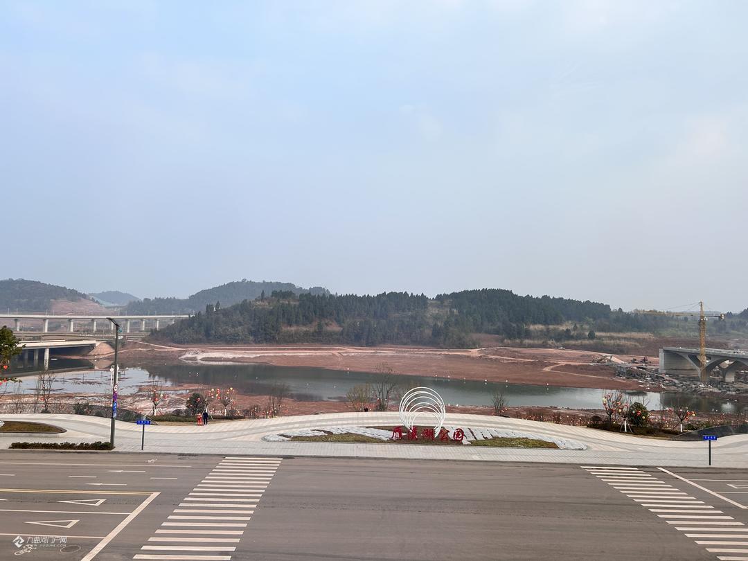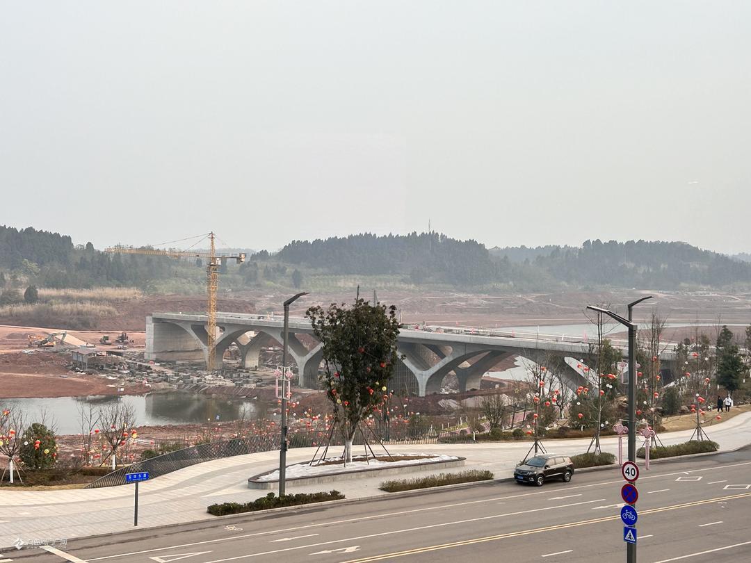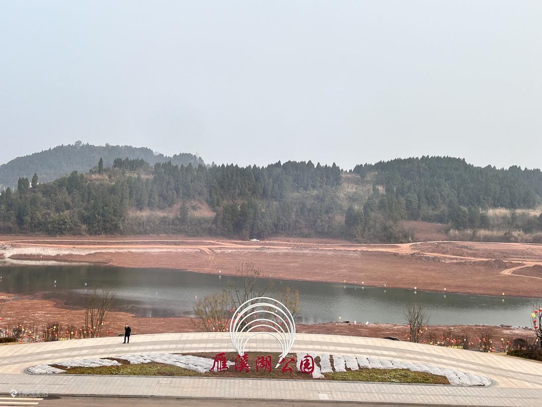 俯瞰资阳雁溪湖公园,水位变化不大,旁边的跨雁溪湖红碑桥已经拆除完钢管架!