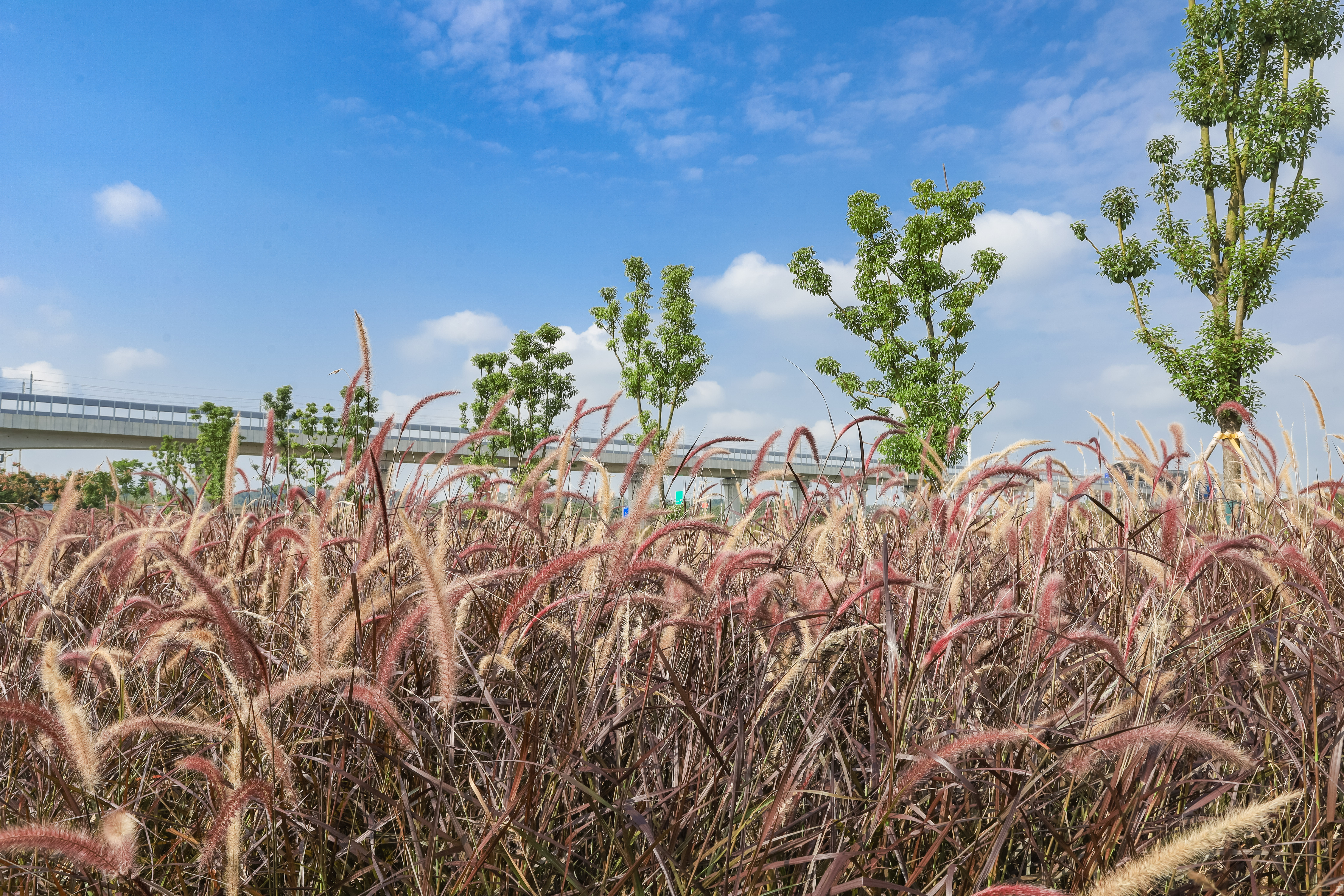 资阳秋日打卡地“上新”,临空地铁站外的紫叶狼尾草盛开!