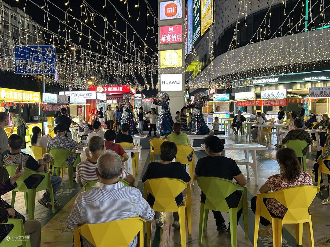 资阳曼购门口这个夜市人气还可以哦!观看表演的人好多