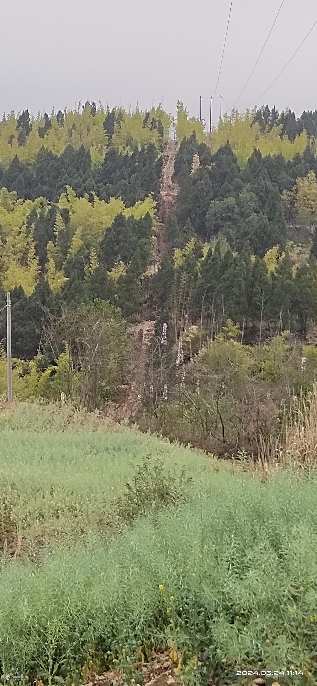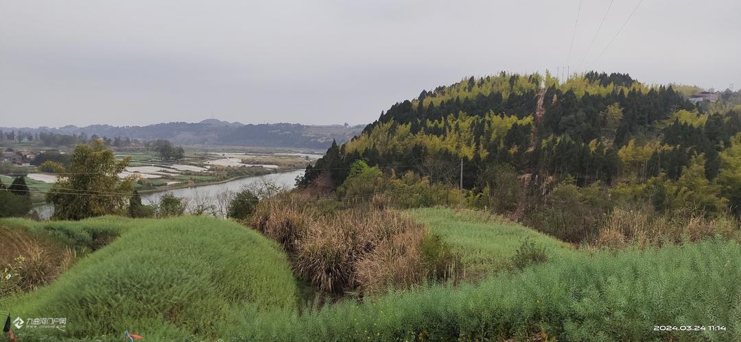 老乡说这是廖家山,以前来这个阶梯型竹森林陡过步。今年特别青翠!对面就是碧水环绕的董家坝网红打卡露营地。除了足迹,什么都别留下,爱护森林,人人有责!!