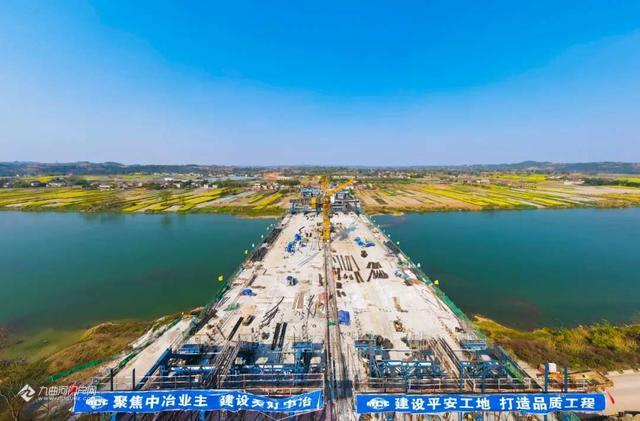 该项目包括董家坝沱江特大桥、两河口沱江特大桥、阳化河大桥,平面交叉4处,以及涵洞、护栏等配套设施。其中,董家坝沱江特大桥(沱五桥)正在进行引桥下部结构施工,已完成工程量的20%,预计八月实现合龙;两河口沱江特大桥主桥右幅已完成合龙,左幅挂篮悬臂浇筑已完成工程量的96%,引桥部分正在进行右幅小箱梁预制安装;阳化河大桥主体结构已完成施工。