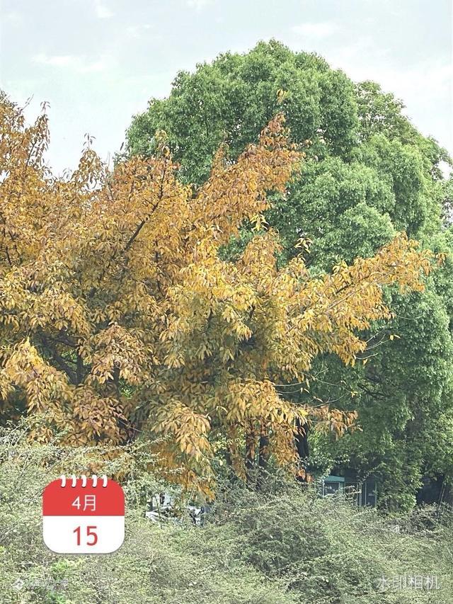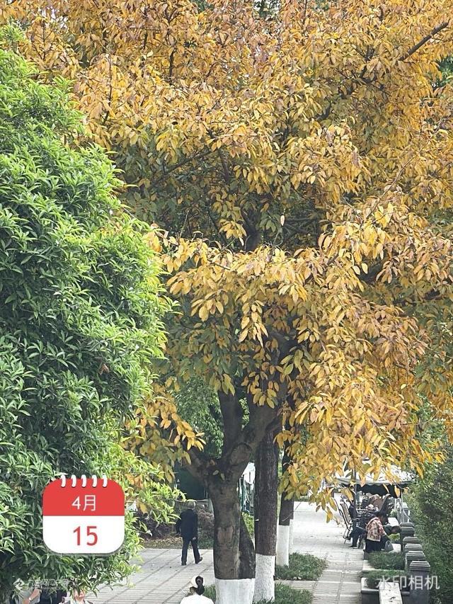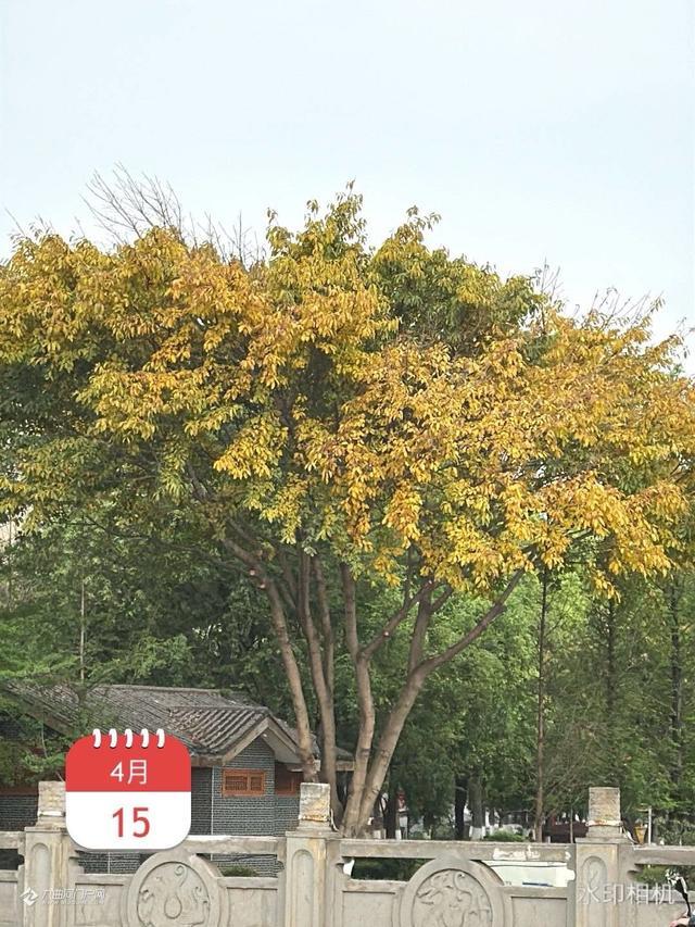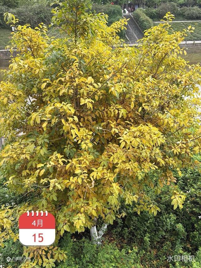 春夏之交的四月天,黄桷树叶黄,九曲河两岸黄绿交织在一起,,给人带来美不胜收的视觉享受。