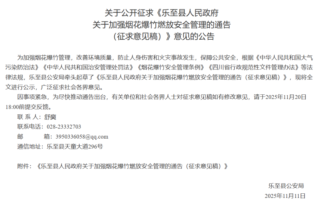 公示中!资阳乐至拟调整烟花爆竹燃放相关规定