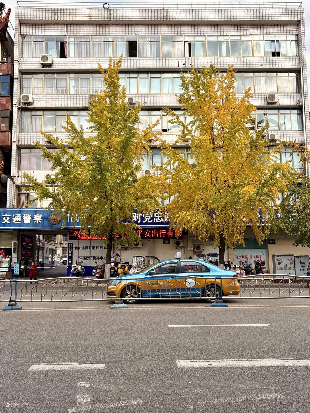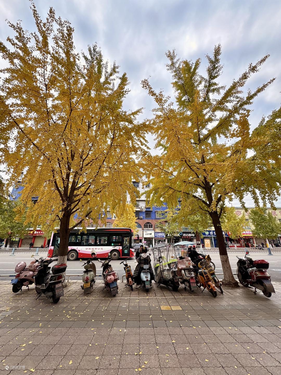 雁城车城大道一段,银杏树黄叶漫漫,满树黄金满地金,银杏飘落美醉人。