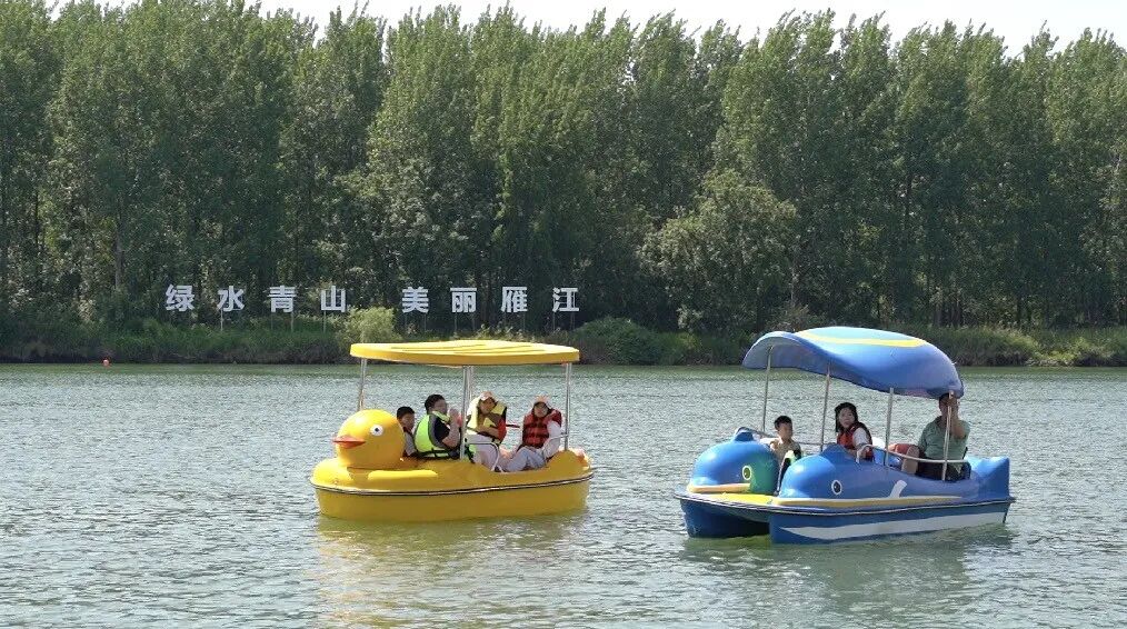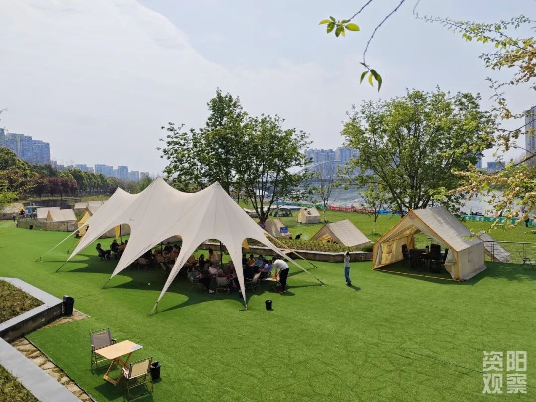 雁江水上运动基地位于沱江边,在这里不仅可以体验到皮划艇、水上摩托车、脚踏船等水上运动项目,还能在临江草坪上感受家庭露营的氛围。