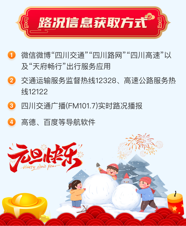 高速不免费,元旦四川交通出行指南来了!这些路段易受冰雪影响