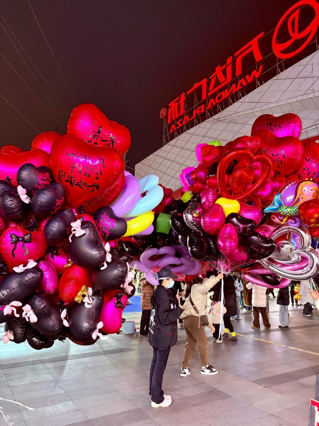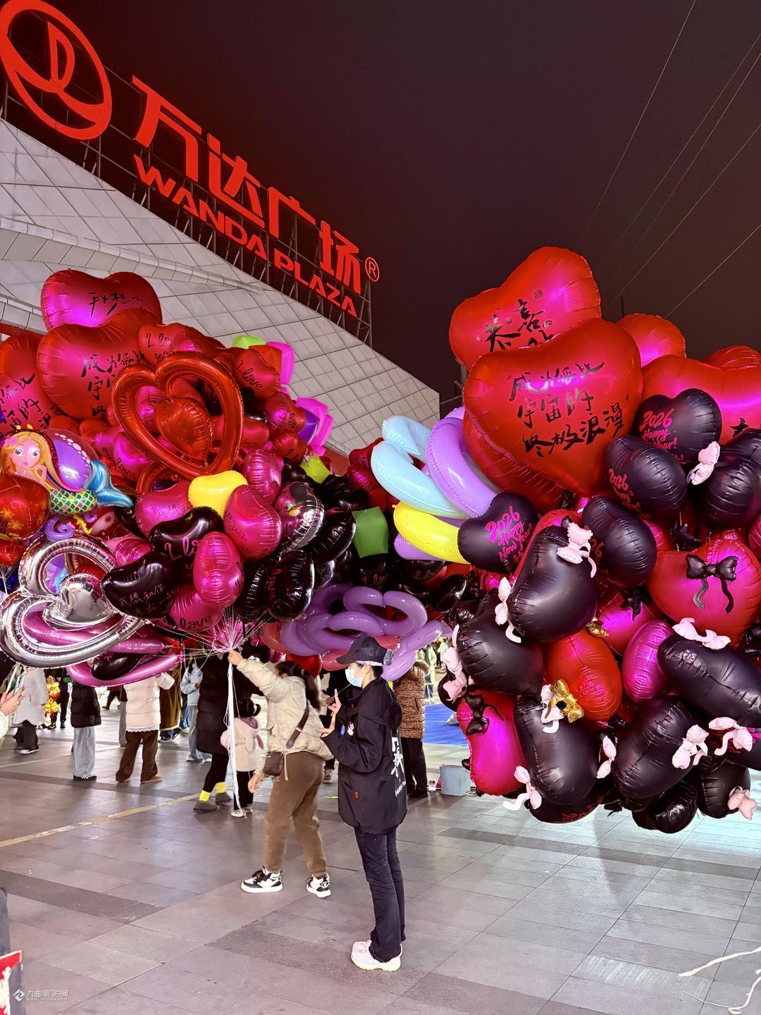 雁城万达广场被一片五颜六色的气球温柔包裹静待零时钟声敲响。