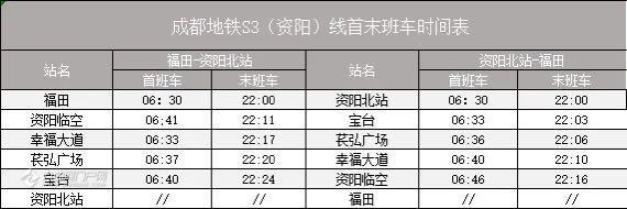 轨道交通资阳线首末班车时刻表来了!可以存起掐着时间赶车