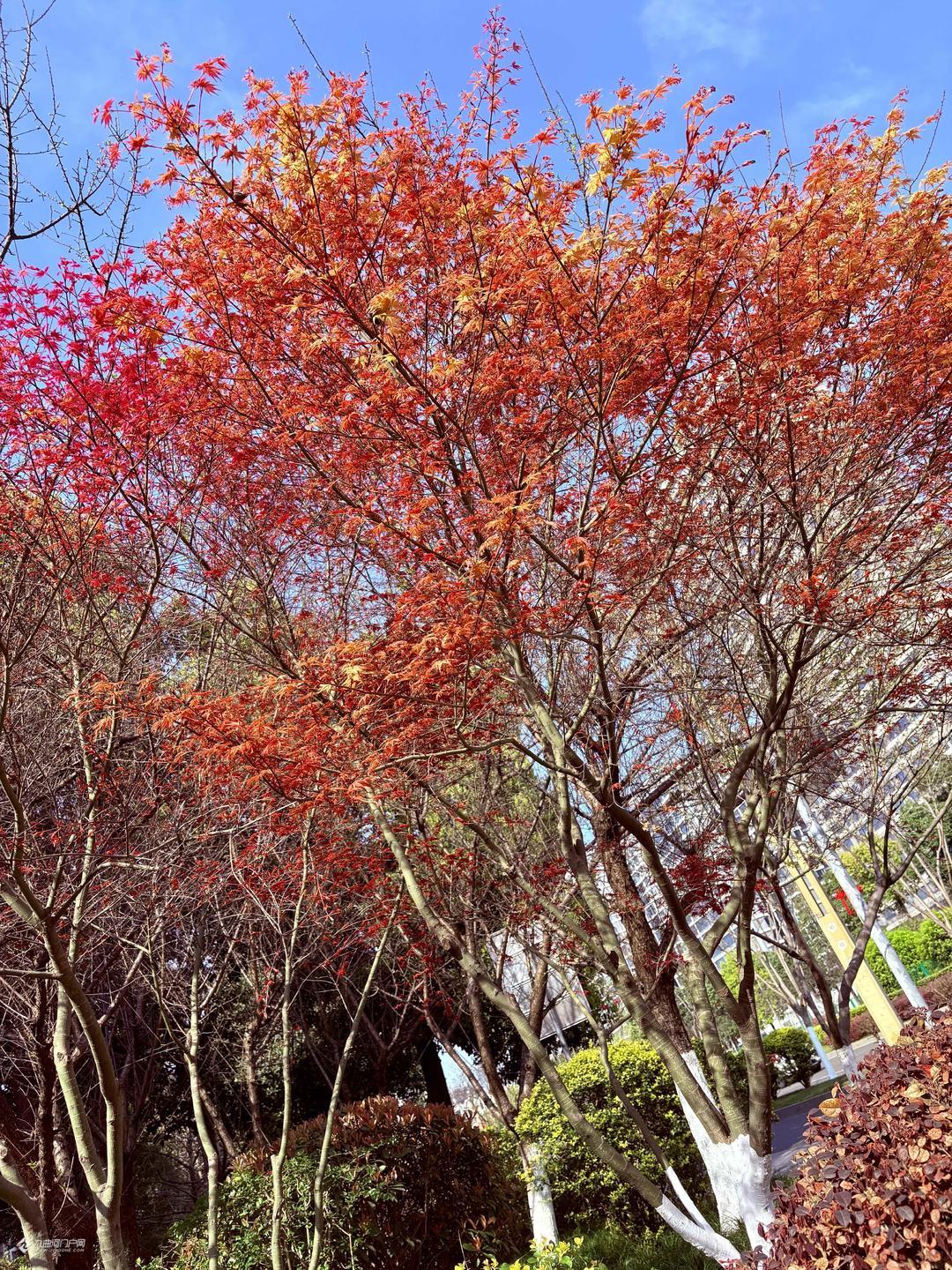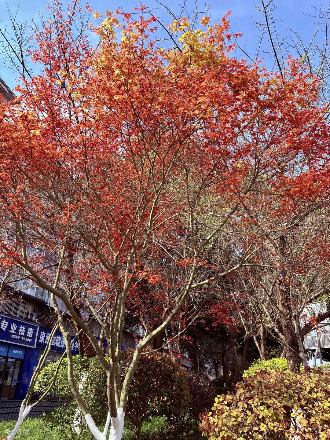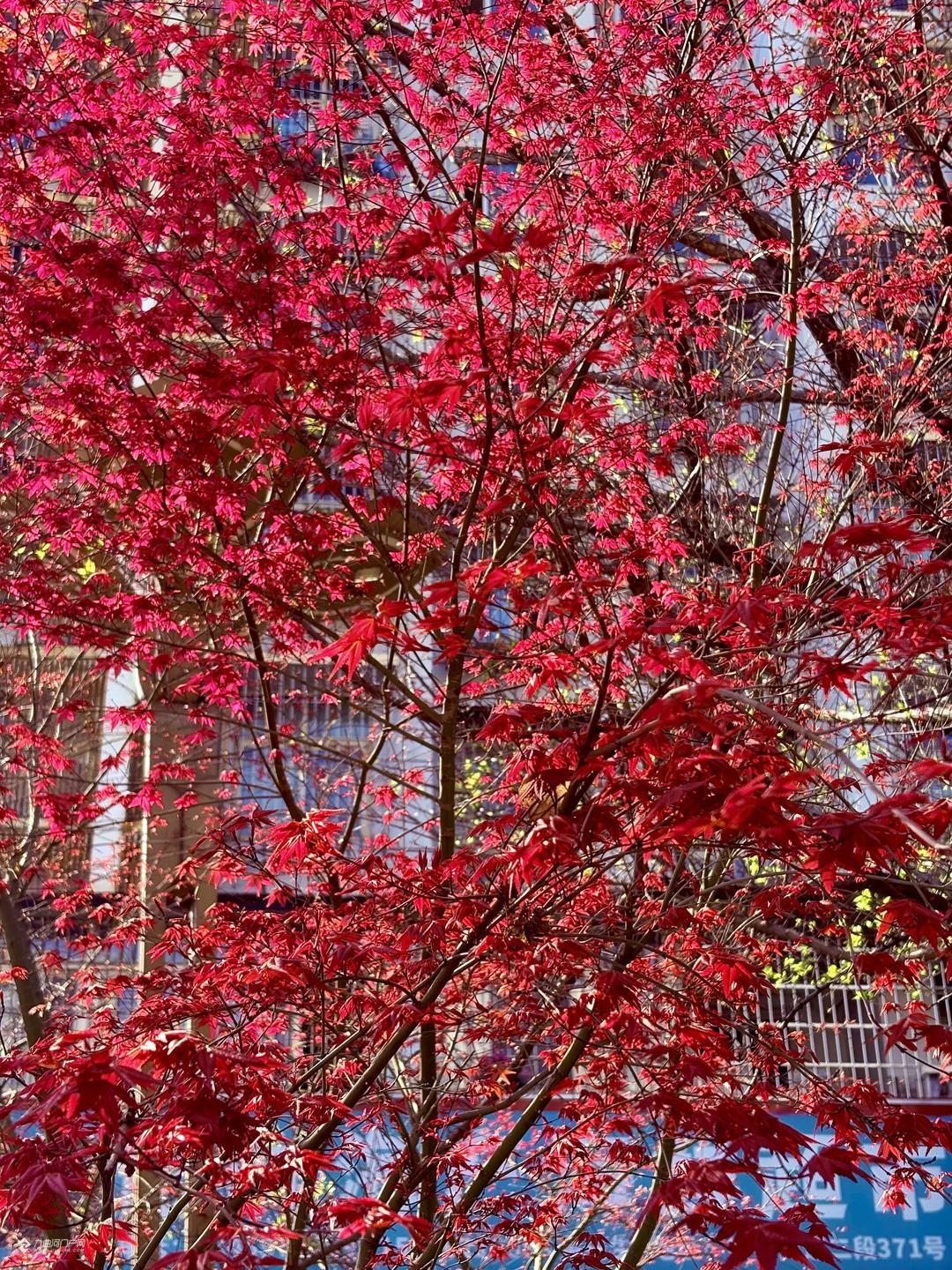 春日里的红枫叶繁茂如火,展现出大自然的神奇魅力。