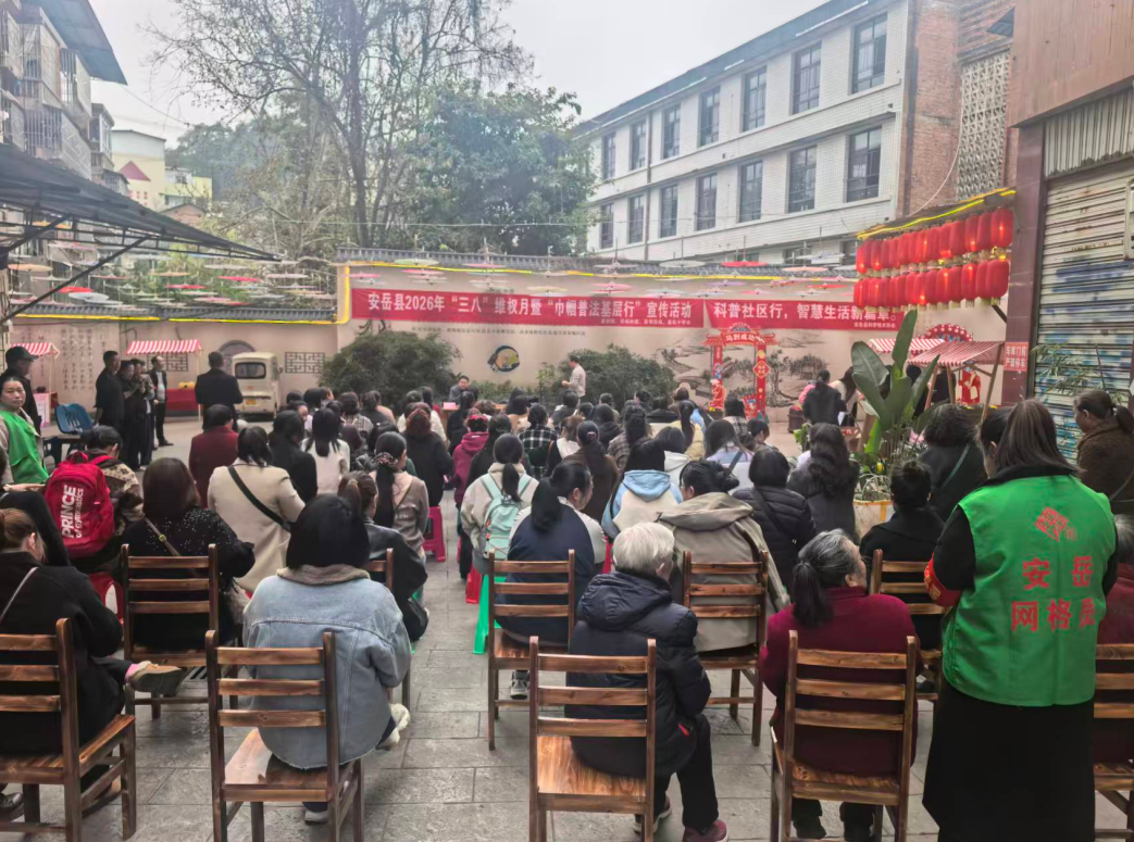 3月6日,安岳县妇联联合岳城街道、县司法局、县红十字会等部门举办2026年“三八”维权月暨“巾帼普法基层行”宣传活动。在法治宣讲专区,岳城司法所所长邓怀平聚焦妇女权益保障、反家庭暴力、婚姻家庭纠纷、劳动就业保障等群众关切热点,用接地气的身边案例、听得懂的方言向群众宣讲。