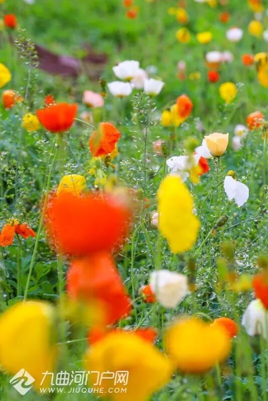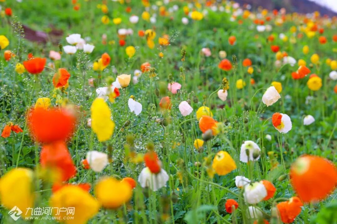 各色虞美人在阳光下肆意绽放