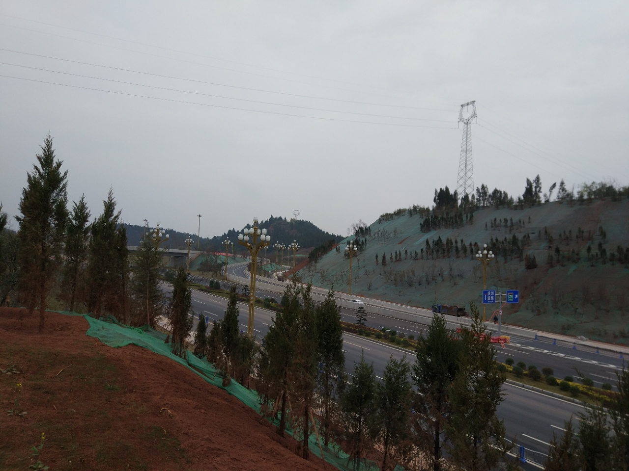 资阳新高速出口还是多大的,边坡的绿化已经成了大家的游玩地!