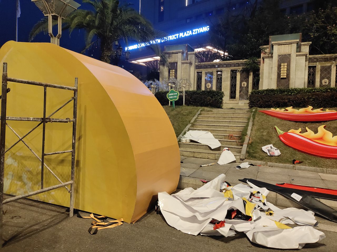 之前还不知道圣高广场在修啥,现在的轮廓就很明显啦!河友们猜到了吗?豪生门口也是热闹哦,工人们加班加点收拾现场呢!加油