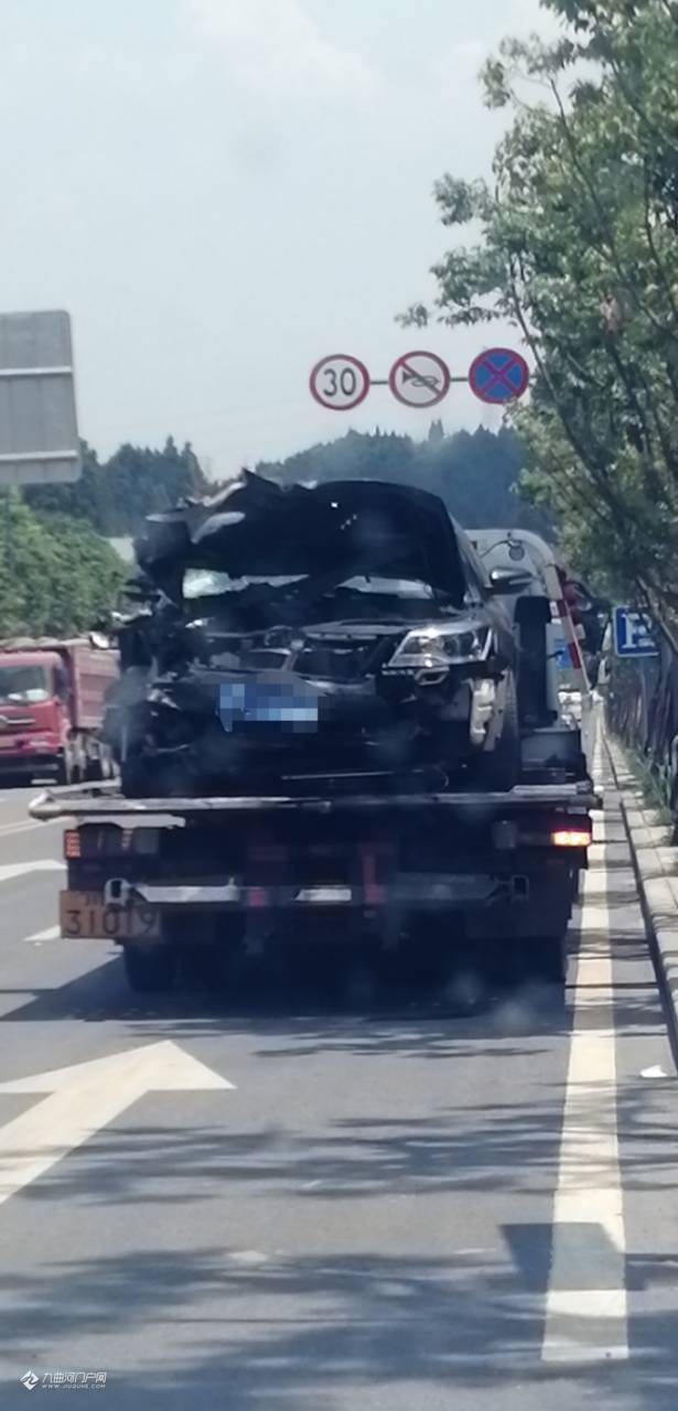资阳外环路与康乐南路丁字路口发生一起车祸,小车被大货车撞的面目全非!