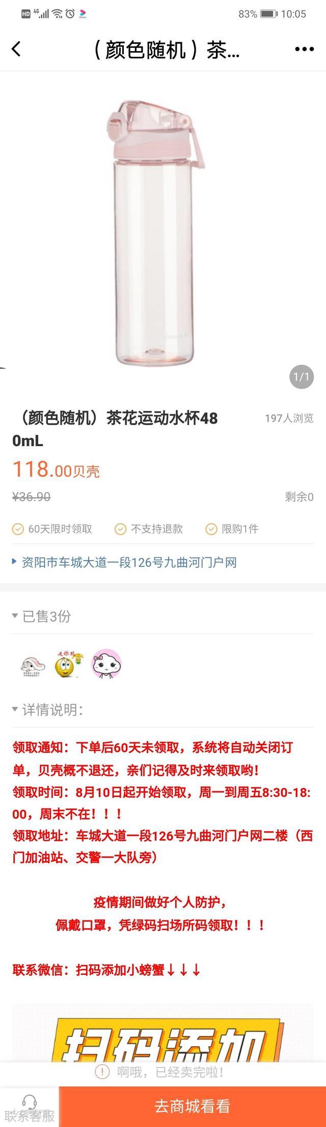 心别太大,量力而行。今天的贝壳商城首先瞄准了那一个运动水杯,倒计时到了,立即就下手,嘿嘿,今天还搞到事喽!