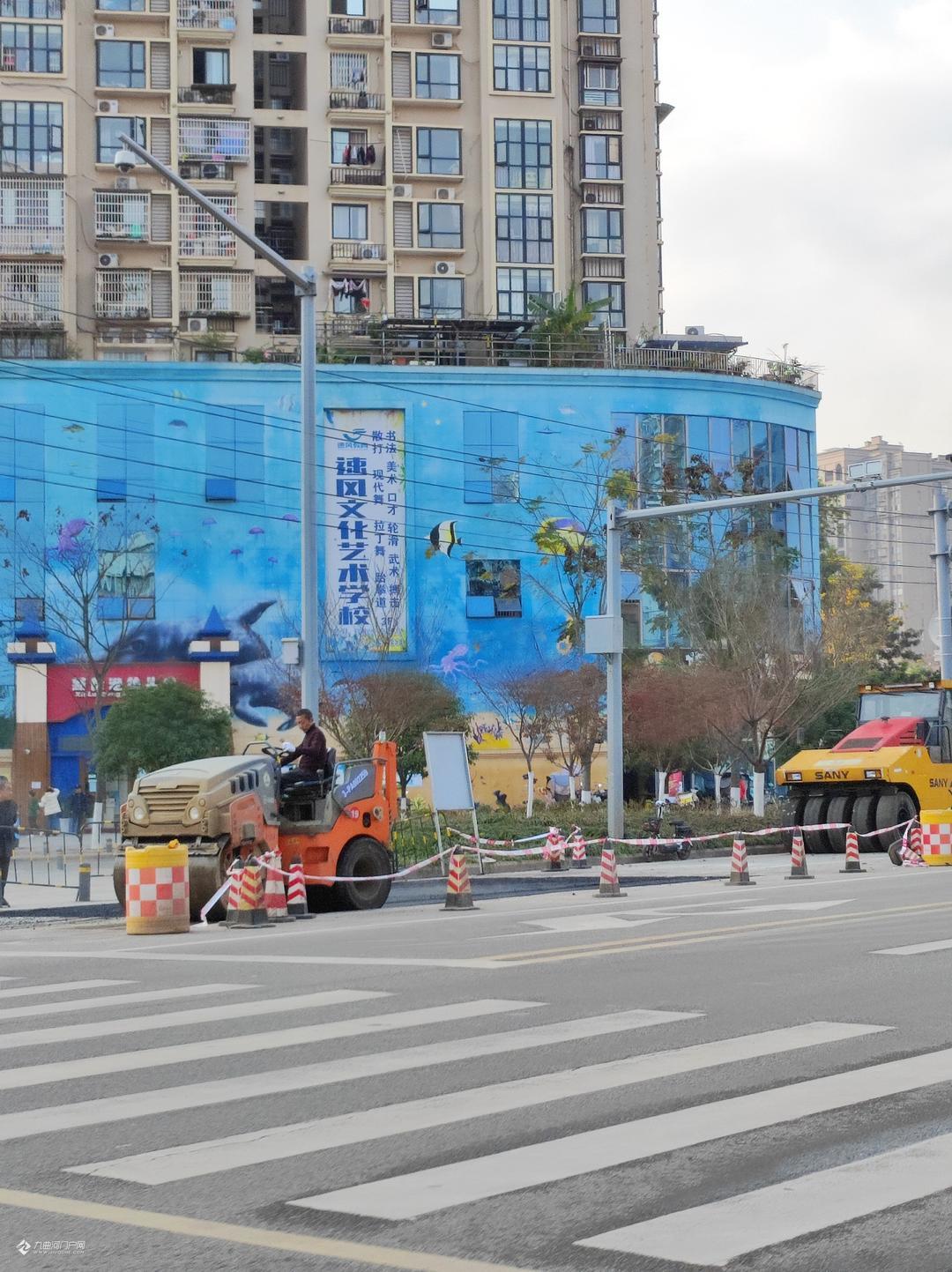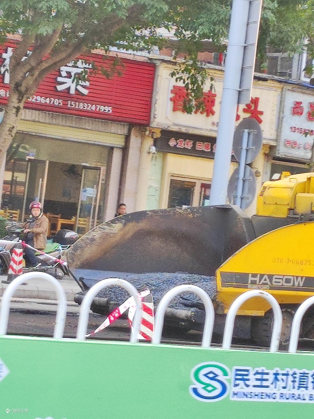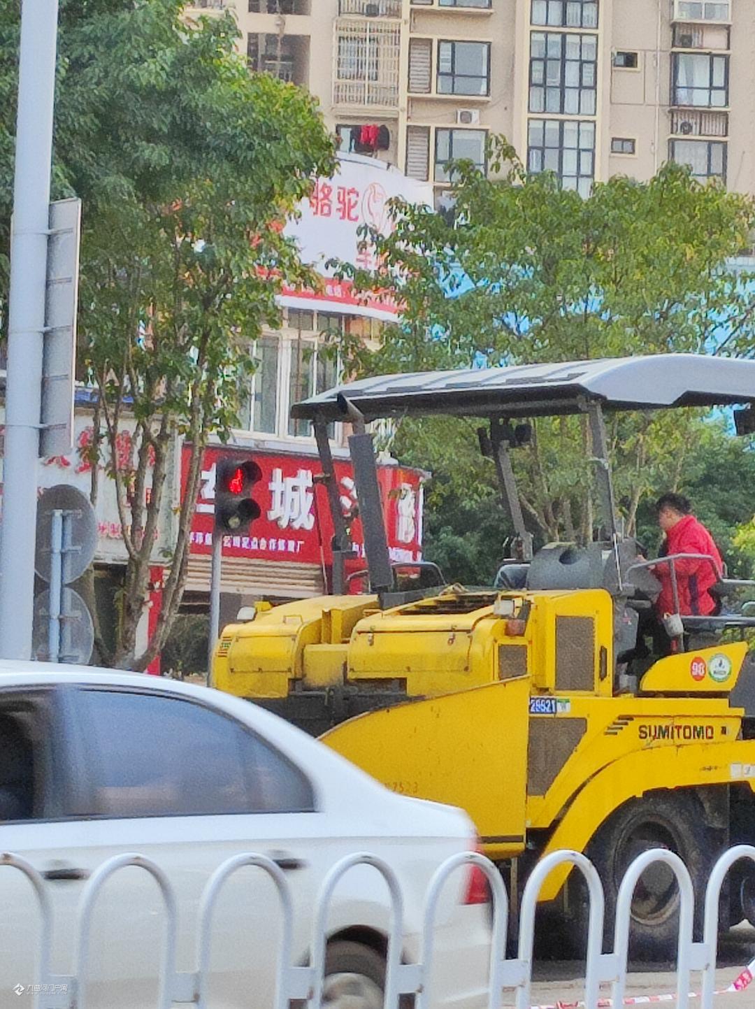 输水管三期工程收尾工作进行中,资阳车城大道新天地广场已经开始铺沥青路面!