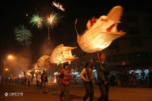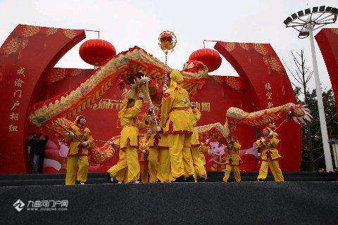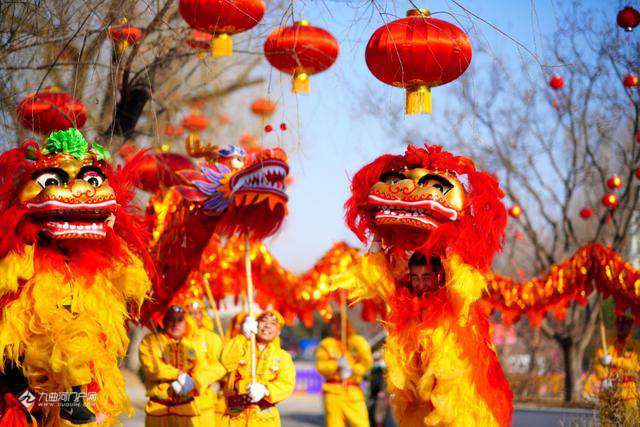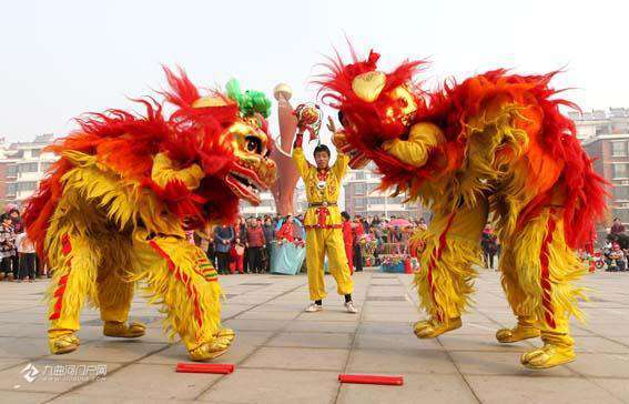 敲锣打鼓观狮舞,点炮猜迷赏对联。