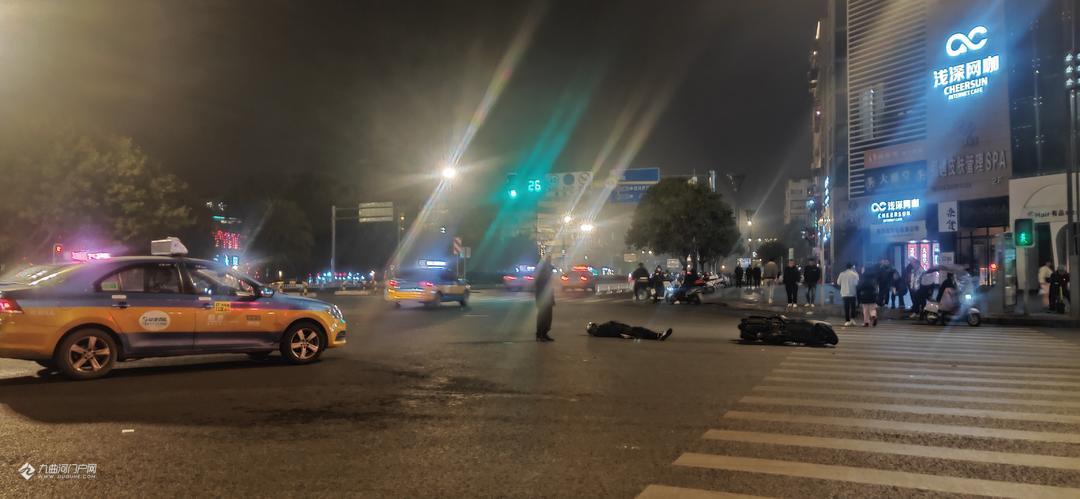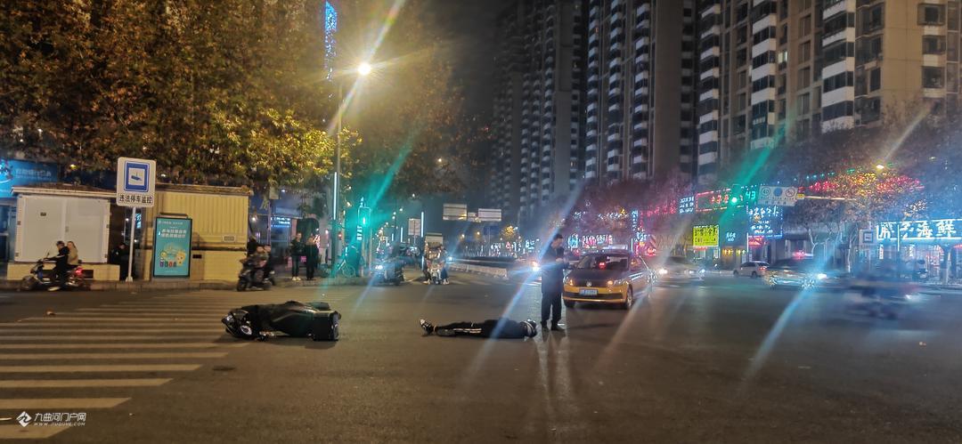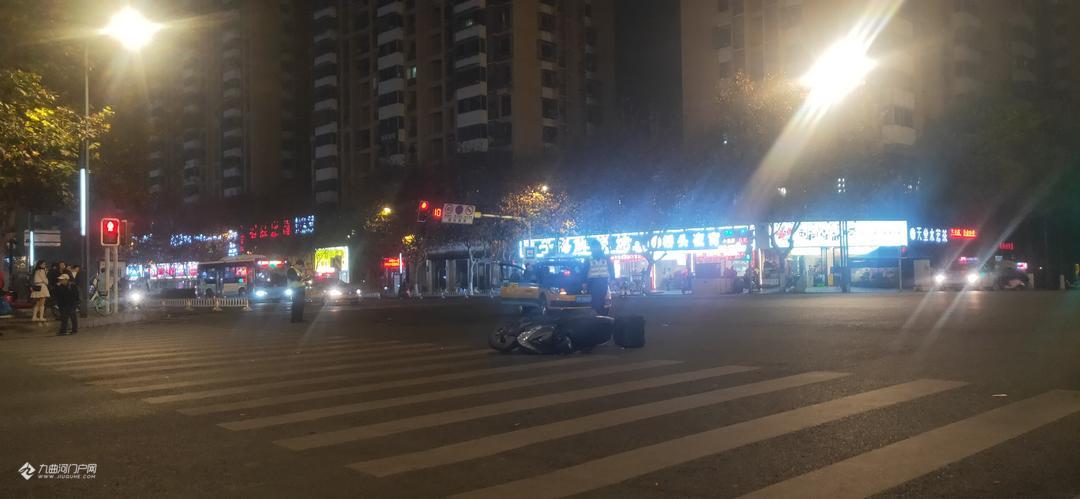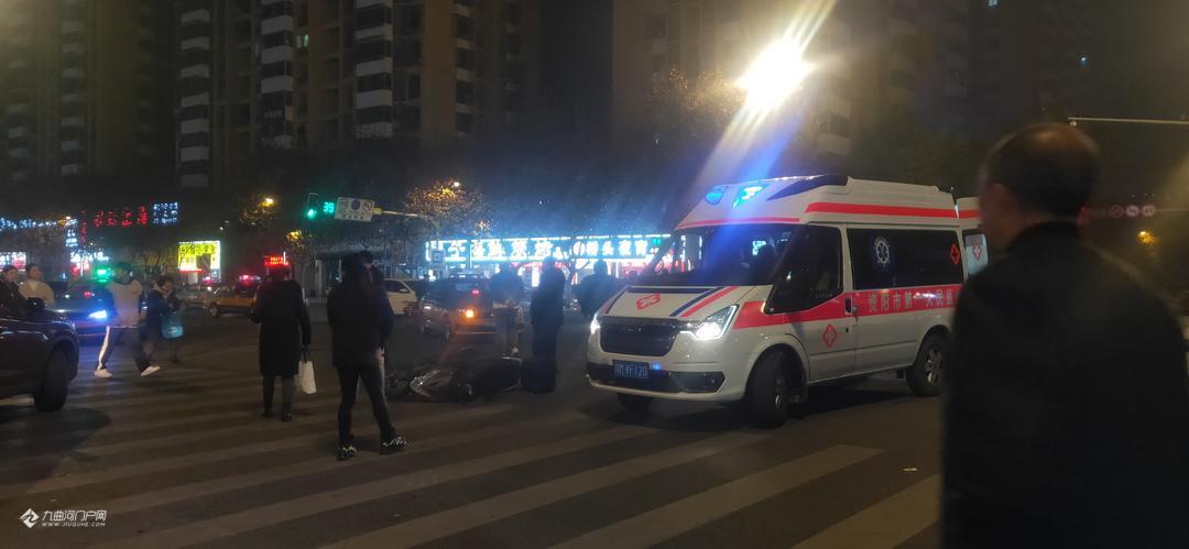刚刚铜车马街与建设西路的十字路口发生一起交通事故,一辆横向直行的的电瓶车与转弯的出租车相撞,有伤亡情况, 请大家小心驾驶,注意安全。