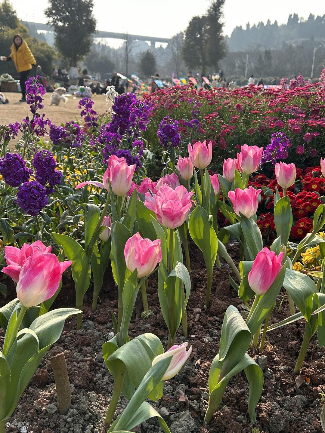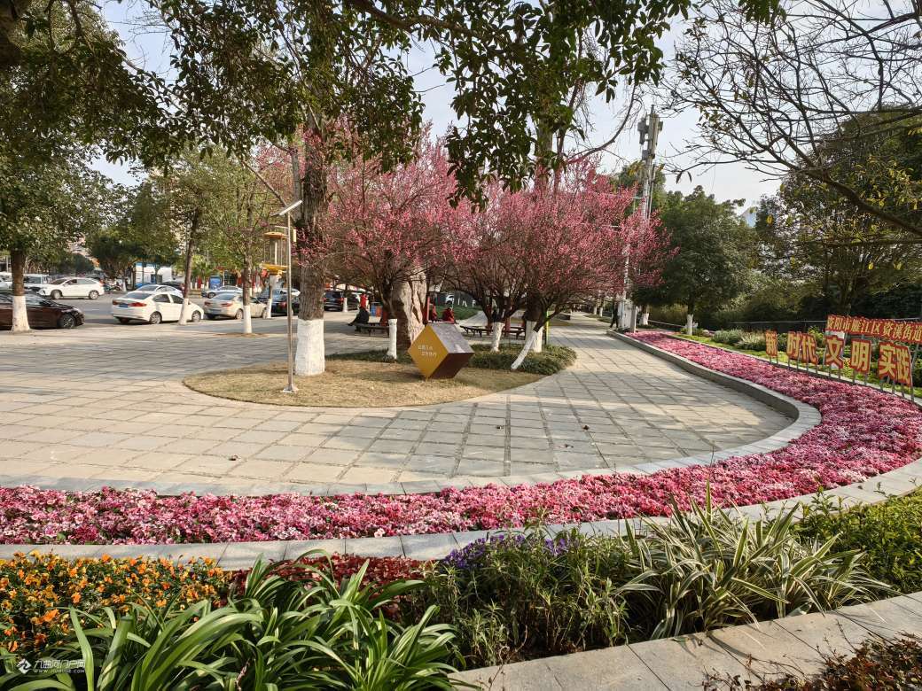 新年迎来了阳光明媚的春天,红梅花儿遍地开,苌弘广场热闹非凡,..