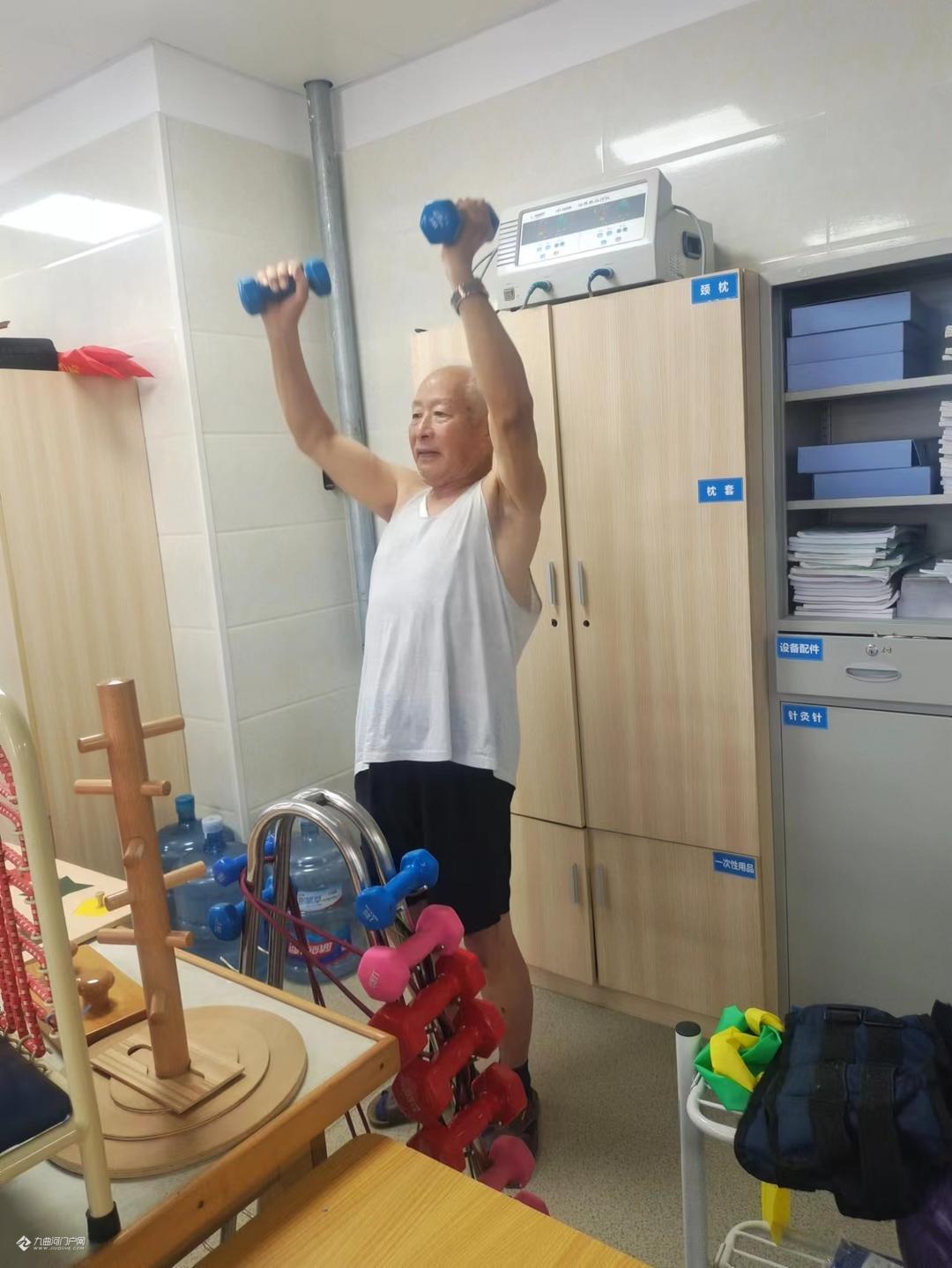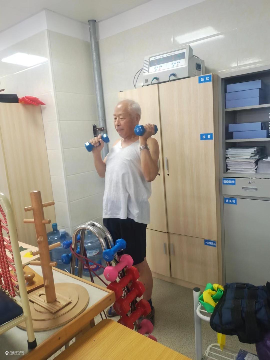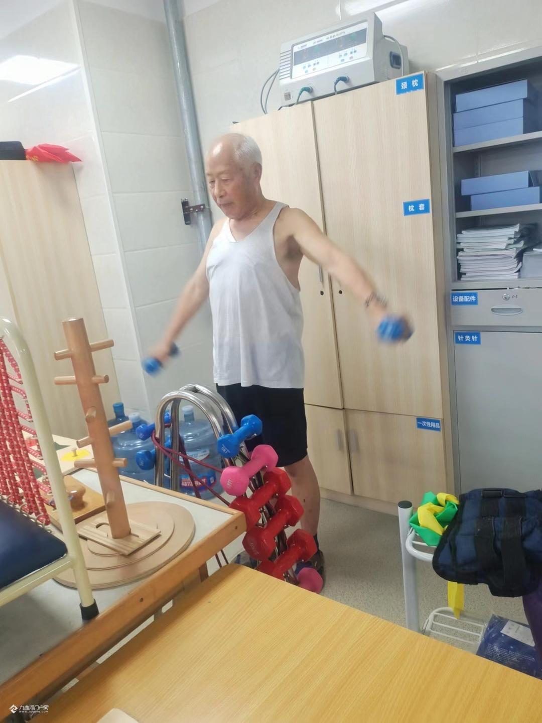 天有不择风云,人有旦夕祸福,不料就在6月8日凌晨5时许,突发脑梗影响到右边手足失去功能了。幸好有当医生的孩子打120,并提示注意事项,才得以及时入住医院抢救,已达脑中风(卒中)2·7级,好在神志清楚,并未昏迷,但右边手足已无功能,入院一周多连翻身都动不了,生活完全不能自理。当时已是万念俱灰,觉得这一生就这样完了吗?好些事还没有做完呢?好在医生们的精心治疗,又因抓得及时,连转两个科室,由神经疾病科初步治愈,再转到康复疼痛科康复理疗。在医生们的精心治疗和我自己的主动配合下出现了奇迹,很快右侧手足渐渐恢复了一些功能,并且一天比一天好,现在可以说达到百分之七八十了。在康复过程当中,康复医生小王专为我制定了训练程序,循序渐进要做的动作手法,老师做一遍我就练了两三遍,当天下午再复习巩固,每天弄得满身大汗而不想罢休,人家休息了我还在练,这个叫毅力。那种场景,那种感觉可能是一般正常人体会不到的,右手举不起来,好像不是自己的了,要左手抓住右手来动,如果要右手举起来,那比千斤还重,而且没目标无定准。是通过针灸啊,理疗啊,经胪磁呀,以及前期的服药、输液化栓各方面治疗手段的配合,才一点一点的好起来了的。终于右边手脚也能够活动了,而且脚也能够站起来走路了,走上一公里也没啥问题了,只是觉得右侧要稍微软一点,有待后期的继续康复锻练。
