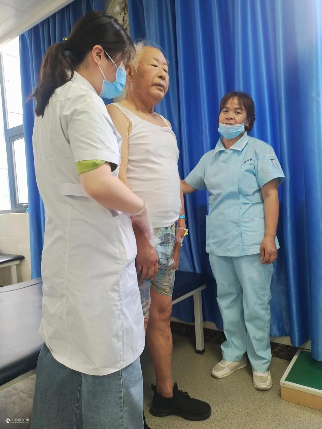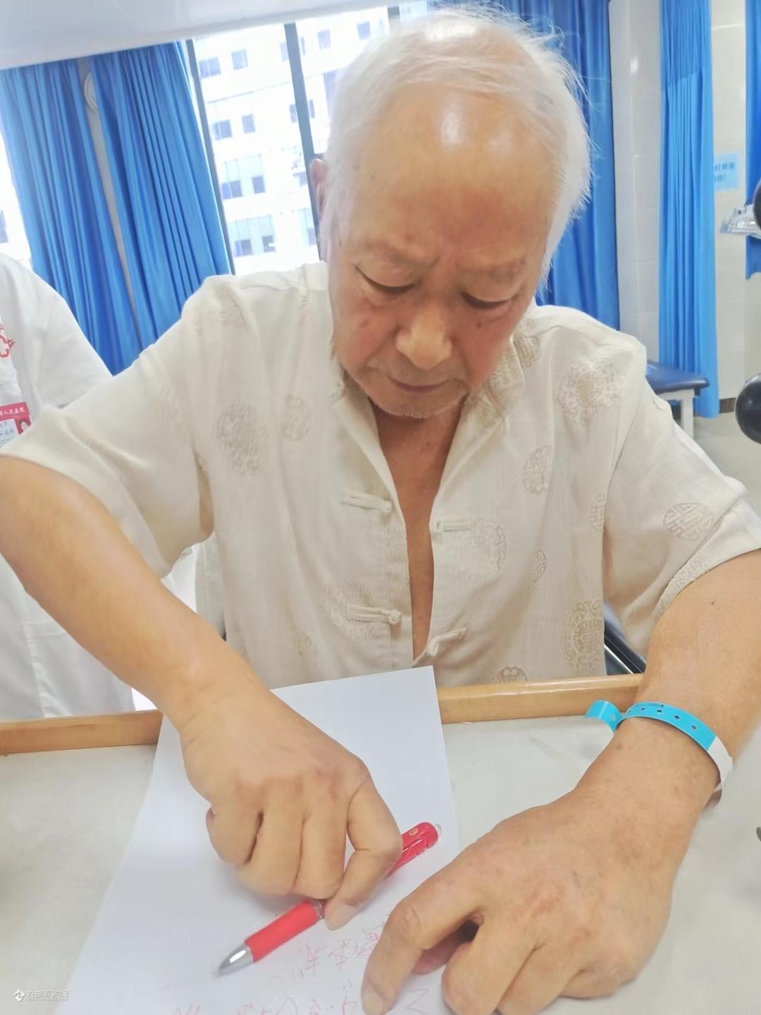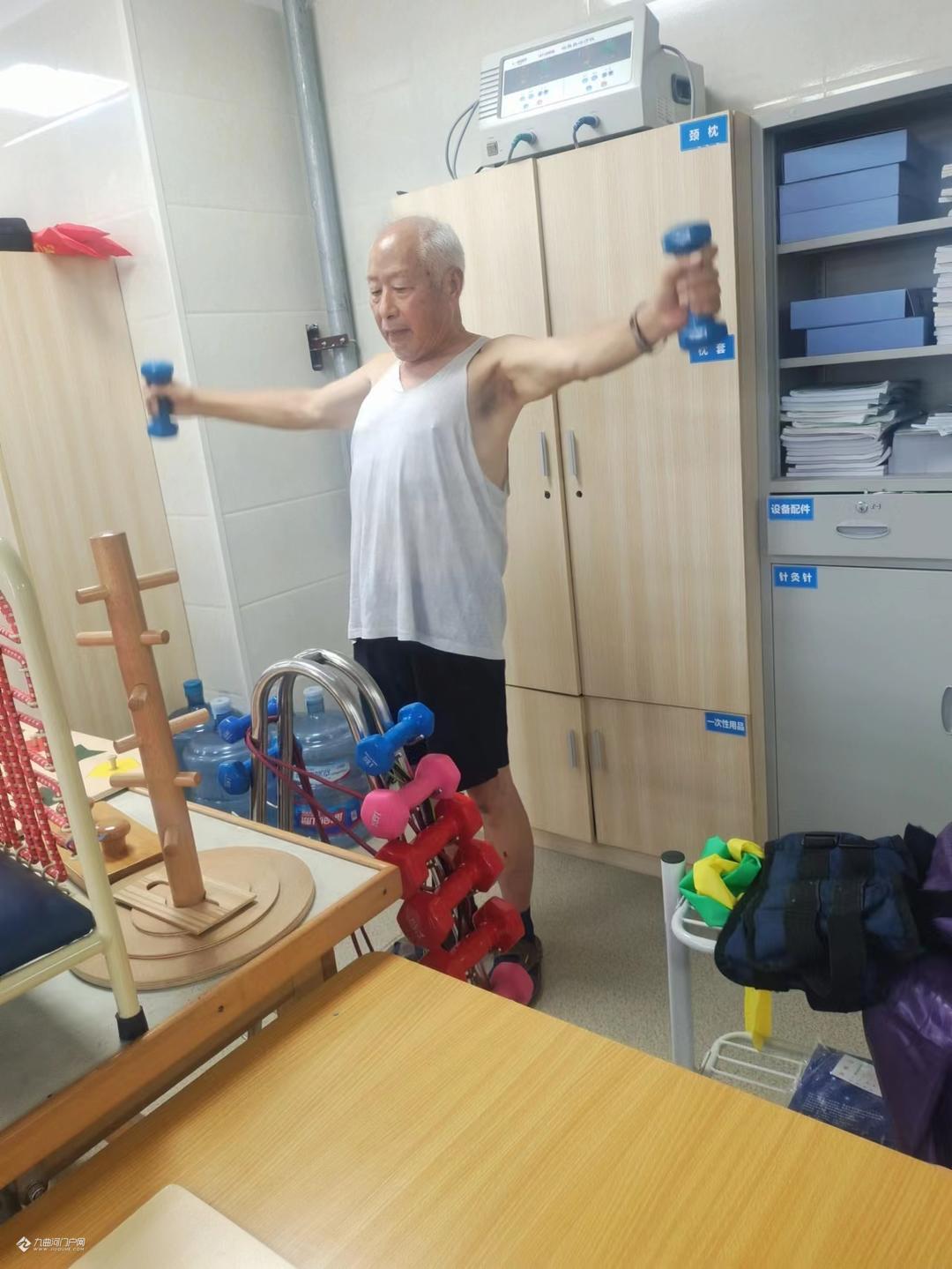 天有不择风云,人有旦夕祸福,不料就在6月8日凌晨5时许,突发脑梗影响到右边手足失去功能了。幸好有当医生的孩子打120,并提示注意事项,才得以及时入住医院抢救,已达脑中风(卒中)2·7级,好在神志清楚,并未昏迷,但右边手足已无功能,入院一周多连翻身都动不了,生活完全不能自理。当时已是万念俱灰,觉得这一生就这样完了吗?好些事还没有做完呢?好在医生们的精心治疗,又因抓得及时,连转两个科室,由神经疾病科初步治愈,再转到康复疼痛科康复理疗。在医生们的精心治疗和我自己的主动配合下出现了奇迹,很快右侧手足渐渐恢复了一些功能,并且一天比一天好,现在可以说达到百分之七八十了。在康复过程当中,康复医生小王专为我制定了训练程序,循序渐进要做的动作手法,老师做一遍我就练了两三遍,当天下午再复习巩固,每天弄得满身大汗而不想罢休,人家休息了我还在练,这个叫毅力。那种场景,那种感觉可能是一般正常人体会不到的,右手举不起来,好像不是自己的了,要左手抓住右手来动,如果要右手举起来,那比千斤还重,而且没目标无定准。是通过针灸啊,理疗啊,经胪磁呀,以及前期的服药、输液化栓各方面治疗手段的配合,才一点一点的好起来了的。终于右边手脚也能够活动了,而且脚也能够站起来走路了,走上一公里也没啥问题了,只是觉得右侧要稍微软一点,有待后期的继续康复锻练。