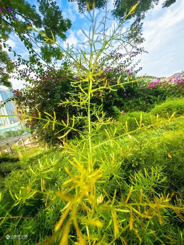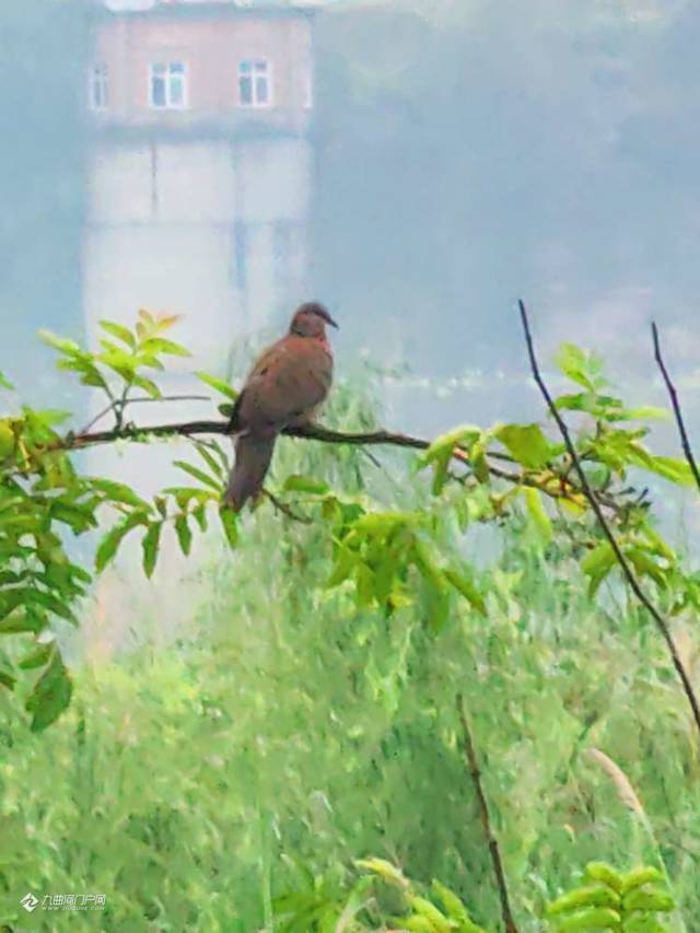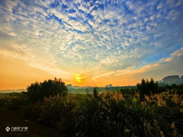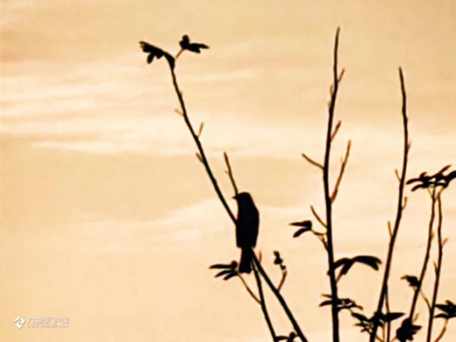 旭日东升,闻听早晨的鸟啼声,鸟儿立枝头,闯入视野,云片筛出的金芒,光路笔直地掉落在地上,碎成一片,夹杂在青草的盎然里。
