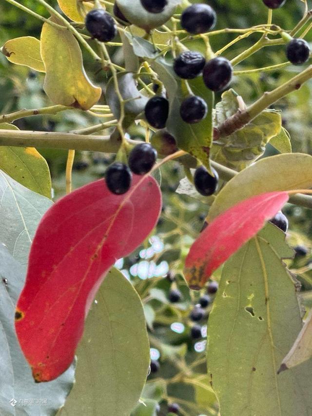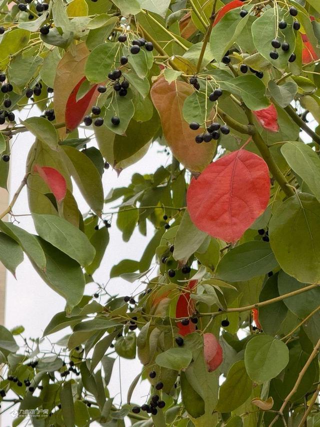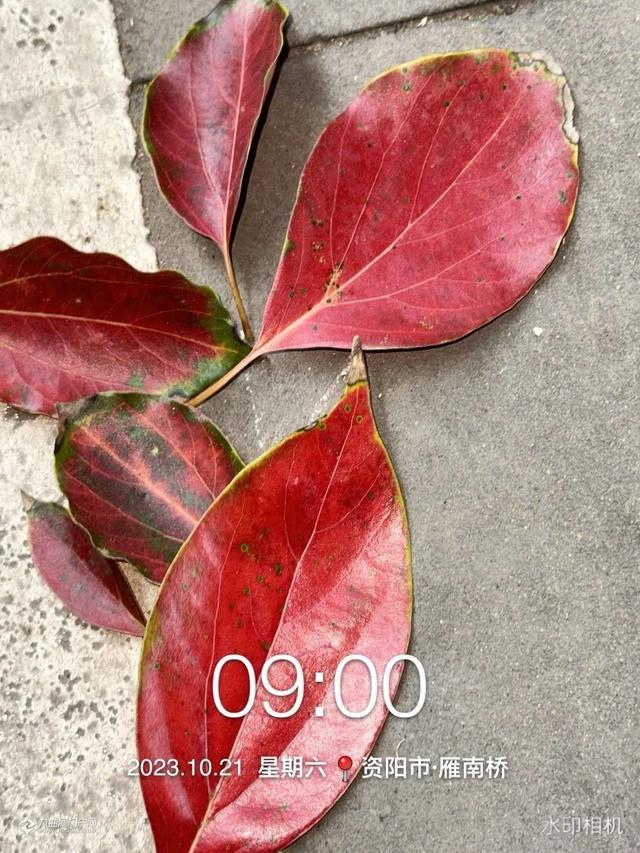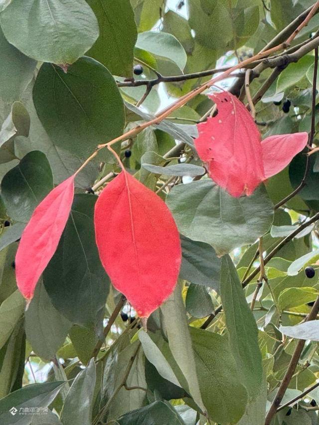 在资阳滨河西路一段香樟树叶红,把九曲两岸装扮得五彩绚丽