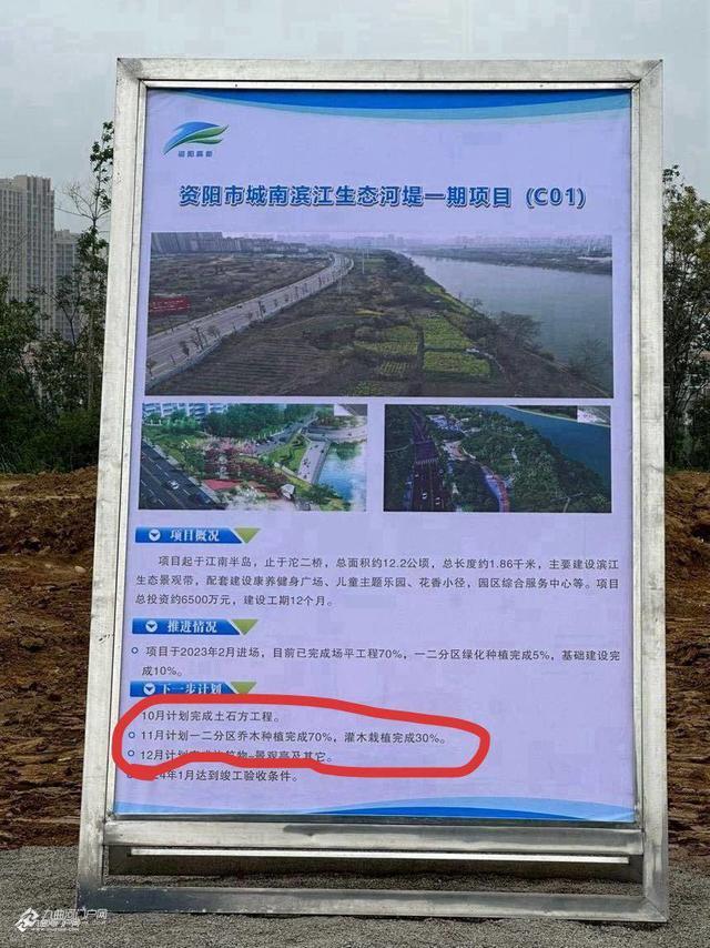 资阳沱江西岸生态景观带工程公示进度,11月大型乔木栽植如期完成!